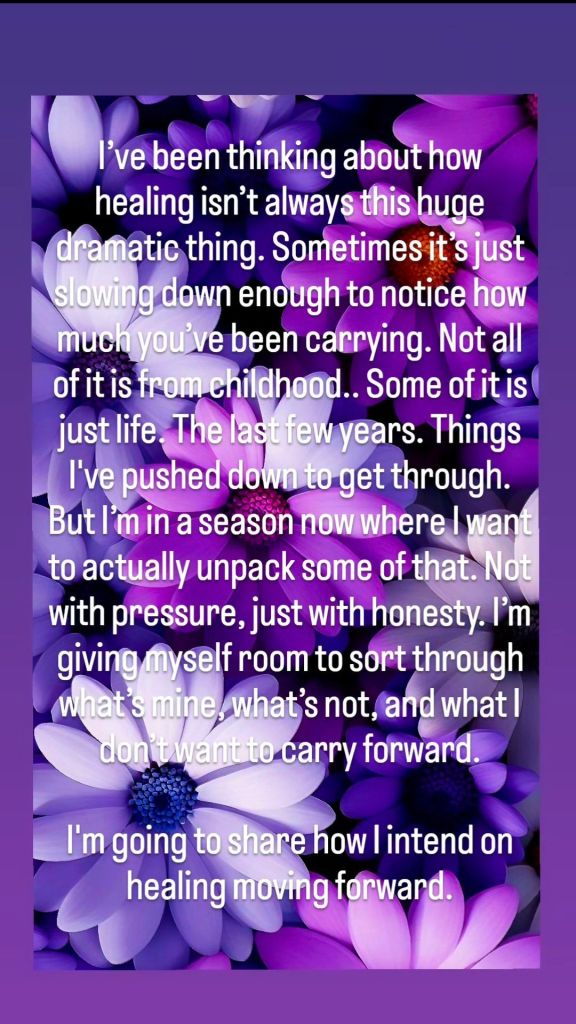 Healing isn’t always big or dramatic. It’s not always some deep thing from your childhood or something major that happened a few years ago. Sometimes it’s just about how you choose to move forward. I want to use this space to share how I’m going about healing. The little ways. The honest ways. The stuff I’m learning, unlearning, trying out. It doesn’t mean everything’s fixed. I’m just being more intentional with how I show up for myself every day.